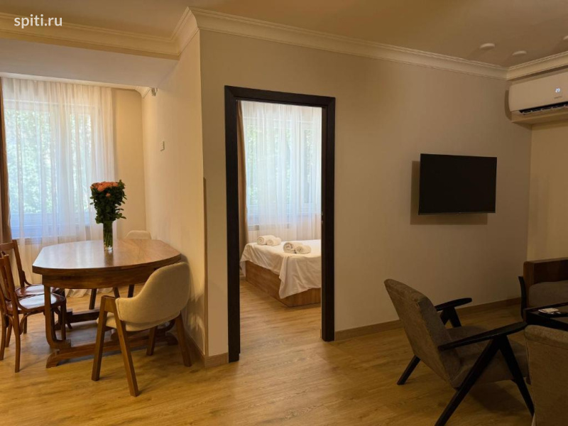 Апартаменты на ул. Кохбаци, 2 — комфорт и стиль в самом центре Еревана Добро пожаловать в светлые и просторные апартаменты с дизайнерским интерьером — идеальное пространство для отдыха и деловых поездок. Здесь каждая деталь продумана так, чтобы вы чувствовали себя как дома: уютно, спокойно и по-настоящему удобно. Гостей встречает просторная гостиная с мягким диваном и Smart TV — место, где приятно расслабиться после насыщенного дня. Рядом расположена полноценная кухня с обеденной зоной, оснащённая всей необходимой бытовой техникой: холодильником, плитой, духовкой, микроволновой печью, электрочайником, а также полным набором посуды и кухонных принадлежностей — всё, что нужно для приготовления любимых блюд. В апартаментах две отдельные спальни с двуспальными кроватями и ортопедическими матрасами, обеспечивающими здоровый и комфортный сон. В ванной комнате установлена современная душевая кабина, гостям предоставляются фен, тапочки и гигиенические принадлежности. По запросу доступны мягкие халаты. К дополнительным удобствам можно отнести качественное постельное бельё и полотенца, стиральную машину, утюг с гладильной доской, кондиционер и бесплатный высокоскоростной Wi-Fi. Апартаменты расположены в самом центре Еревана, в нескольких шагах от уютных кафе, популярных ресторанов, бутиков и главных достопримечательностей города. Это идеальное место, где сочетаются стиль, комфорт и безупречное расположение.